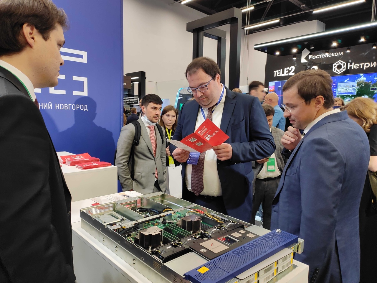 В рамках официального обхода стенд посетил министр цифрового развития, связи и массовых коммуникаций Российской Федерации Шадаев М.И. Специалисты рассказали о возможностях РЕД ОС и совместимости с сервером Taishan.